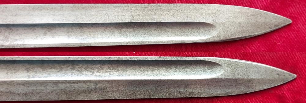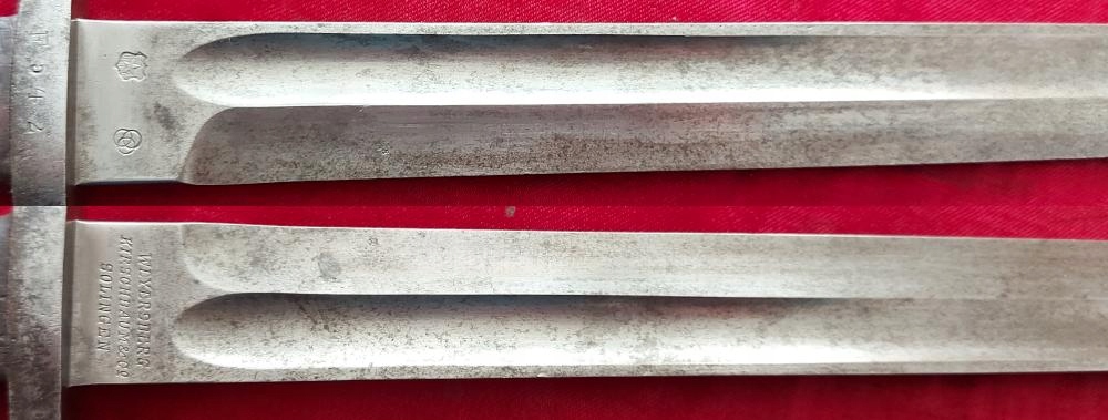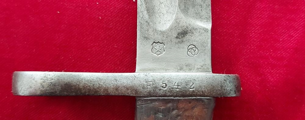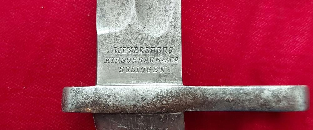 Копію можна побачити на фото, добре збережена. Лезо незаточене та незаточене. На кромці леза маркування WEYERSBERG KIRSCHBAUM & Co SOLINGEN, з іншого боку - чилійське маркування. Номер F542 вибитий на цівці. Накладки на ручки дерев'яні, оригінальні. На обшивці помітна поздовжня тріщина (проте обшивка стійка). Багнетний замок працює.