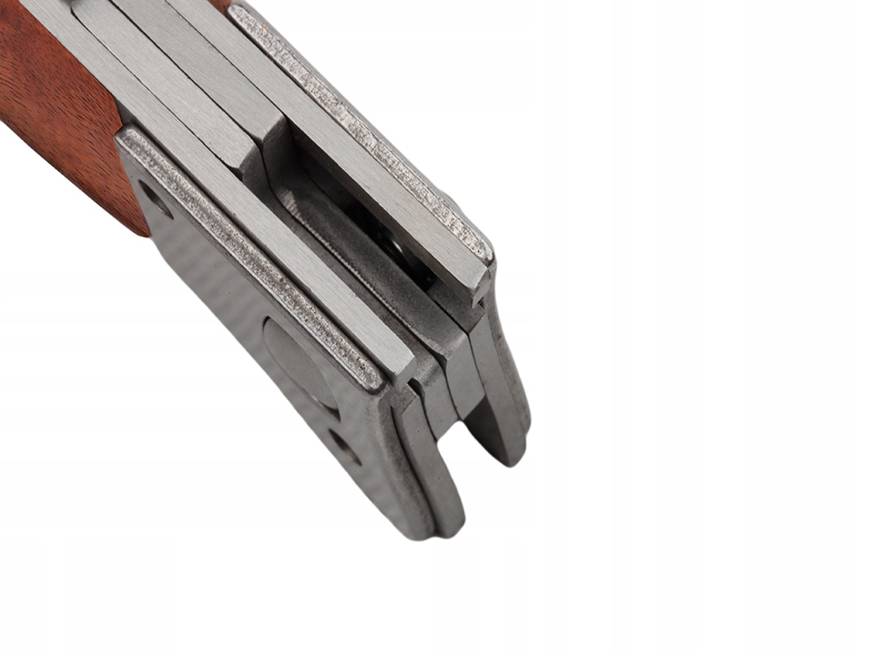 Ергономічна рукоятка виготовлена з алюмінієвих пластин і дерев'яних накладки кріпляться гвинтами.