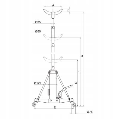 Гідравлічний підйомник 1000 кг, висота 899-1899 мм, 36 рухів до макс.