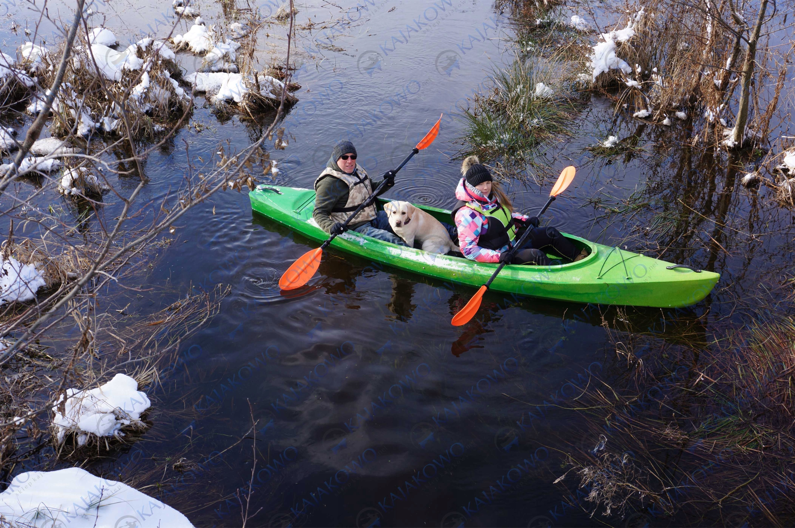 Каяк має 2 комфортних сидіння для дорослих з місцем для пиття та можливістю взяти дитину.