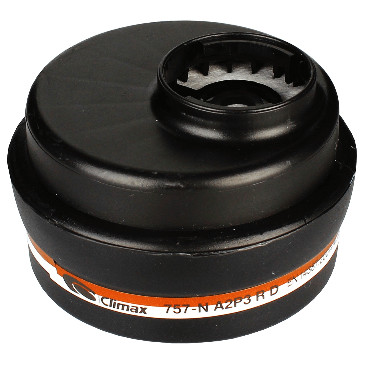Фільтр Climax типу A2P3 захищає дихальну систему від органічних парів і розчинників з температурою кипіння вище 65*C, а також частинок (пилу та аерозолів).