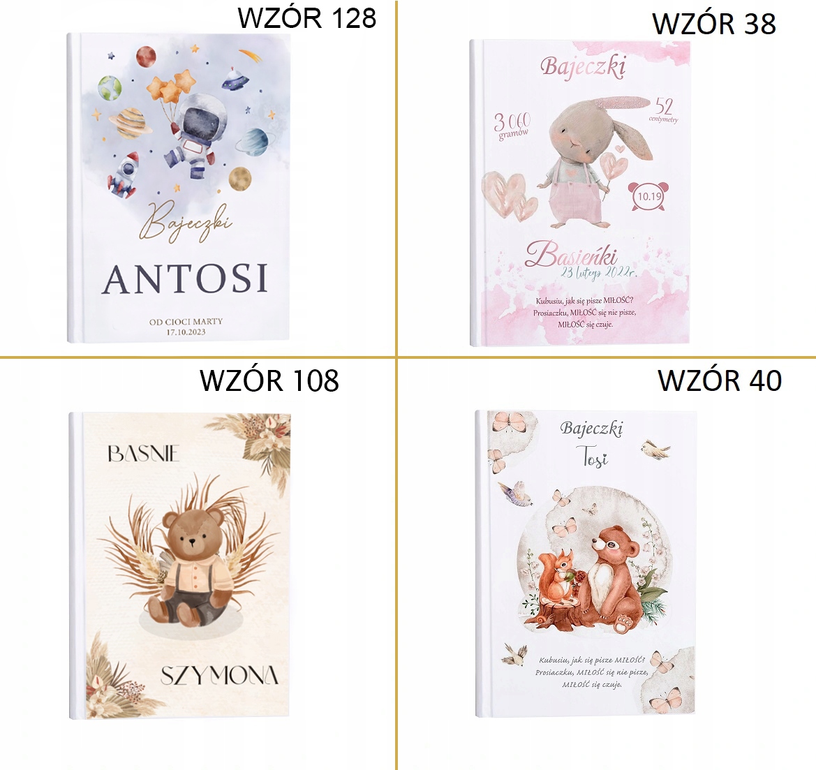 Обкладинка персоналізована, містить напр.: дані дитини, фото, присвяту.
