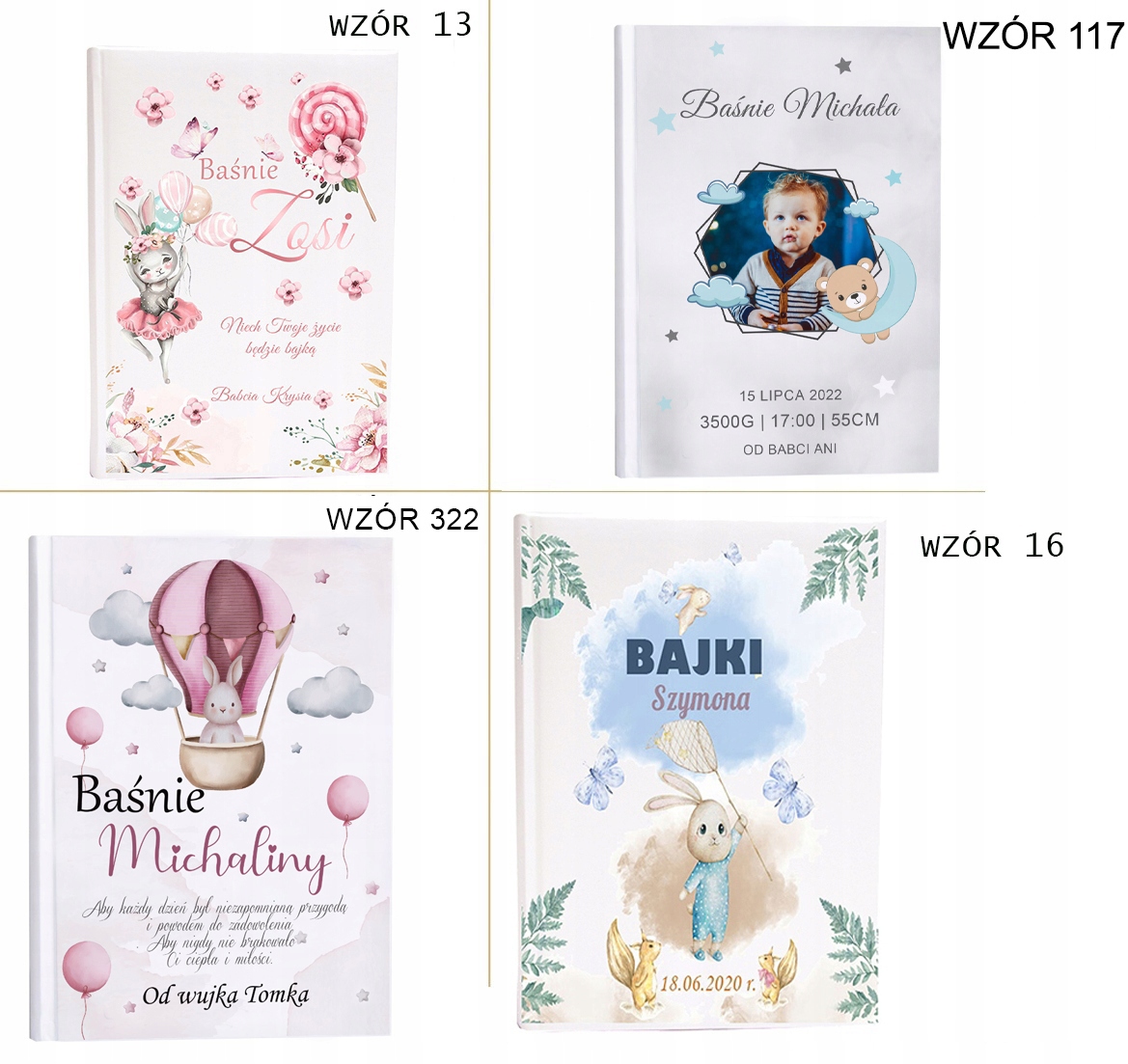 Обкладинка персоналізована, містить напр.: дані дитини, фото, присвяту.