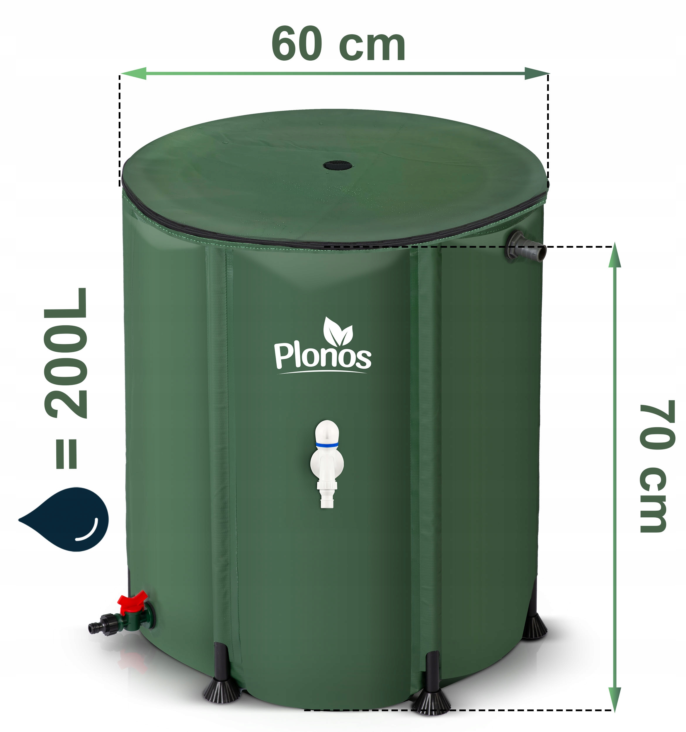 Досить для всього саду! Буде вмістити воду на цілих 20 повних 10-літрових банок! Завдяки цьому ви можете вільно поливати сад та теплицю, економлячи воду від мережі та насолоджуватися легким доступом до дощової води.