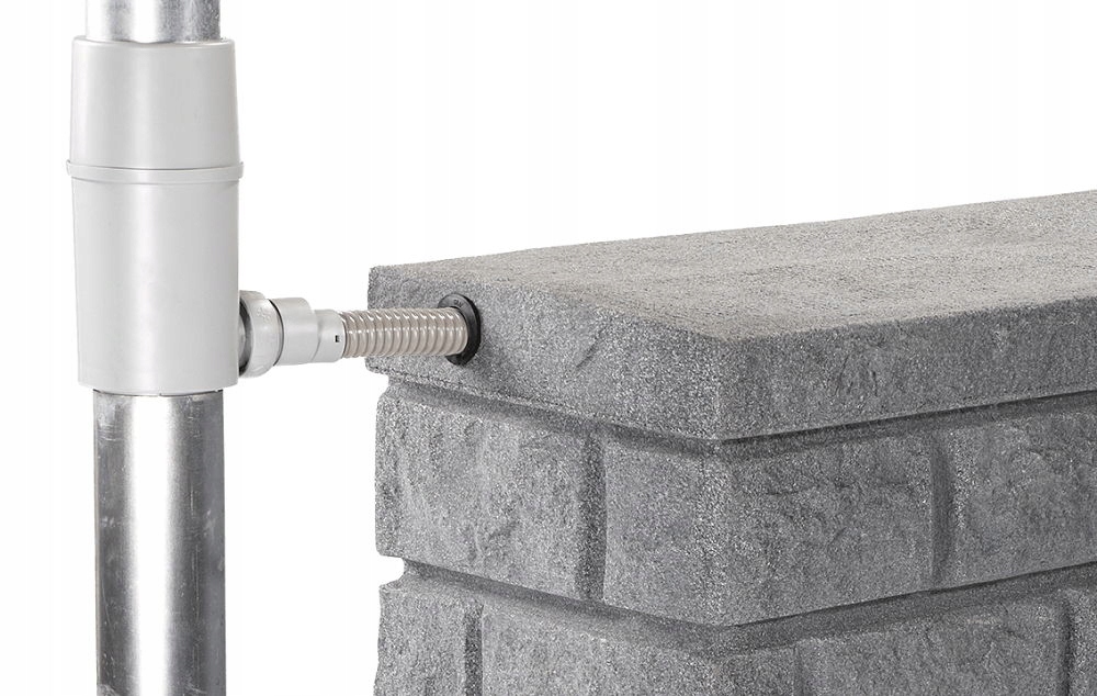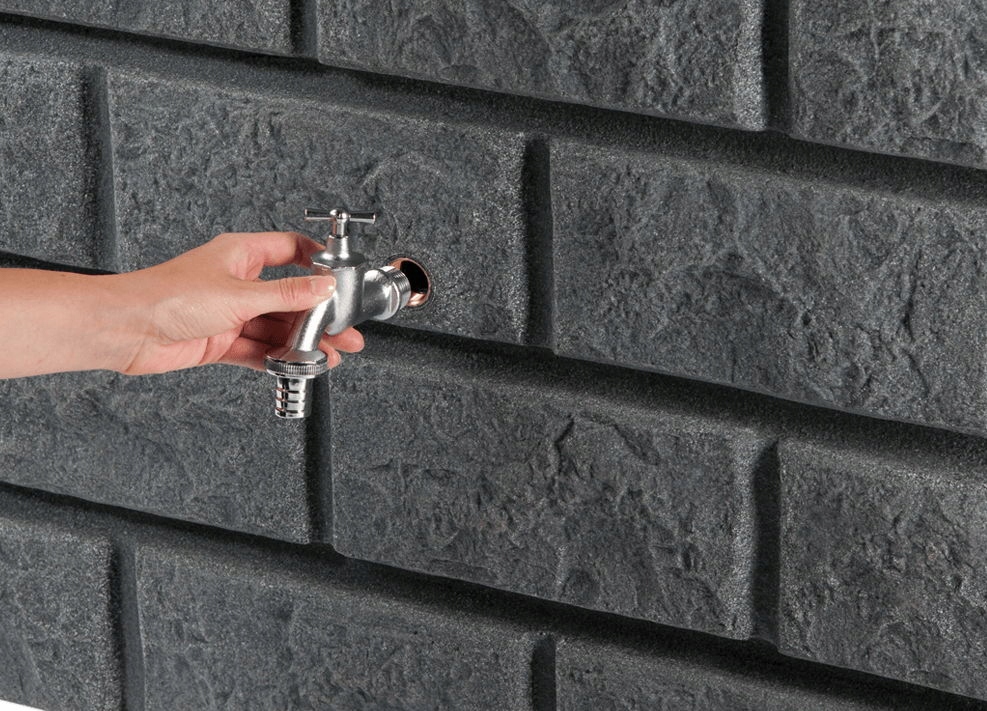 ⭐️"ROCKY" має сірий поверхня, що імітує цегляну кладку.Поліетилен, з якого виготовлений резервуар, стійкий до випромінювання УФ і сильних атмосферні умови.