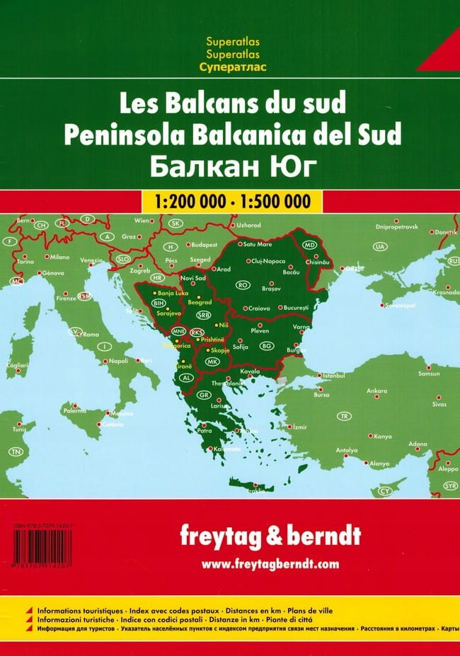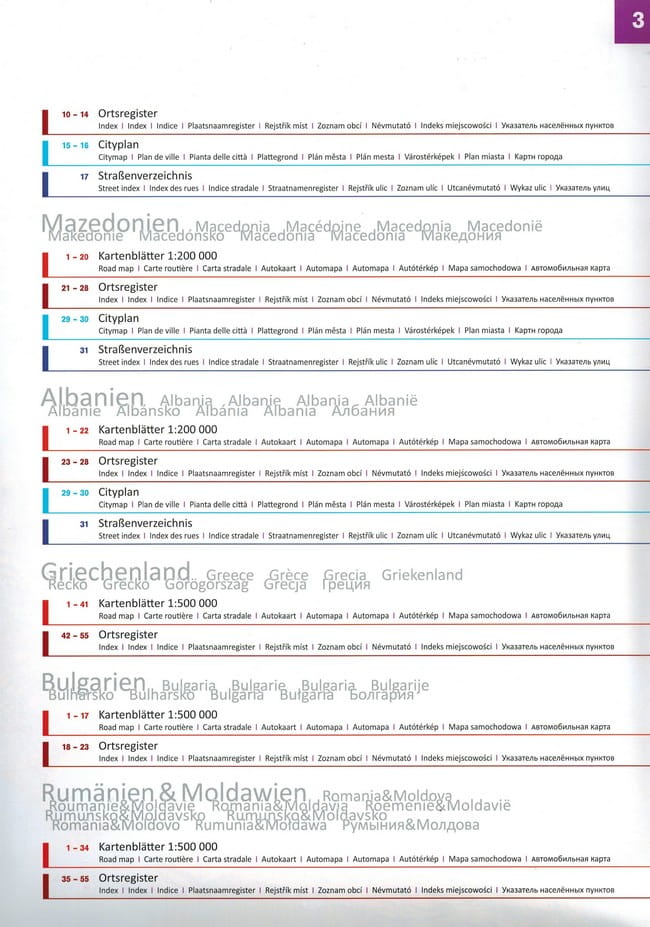 Автомобільний атлас Балкан у масштабі 1:200 000 та 1:500 000, по спіралі. Легенда десятьма різними мовами, зокрема: польською, англійською, німецькою, французькою та італійською мовами.