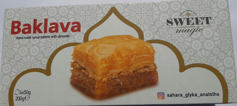 Баклава - це солодкість, яку можна знайти у багатьох кухнях Близького Сходу та колишніх османських країн, і, звичайно, в Греції. Солодкість виготовляється з тіста filo і містить наповнення горіхів, зазвичай фундуки, фісташки або волосся, або мигдаль, а солодкий смак отримує з цукру або медового сиропу.