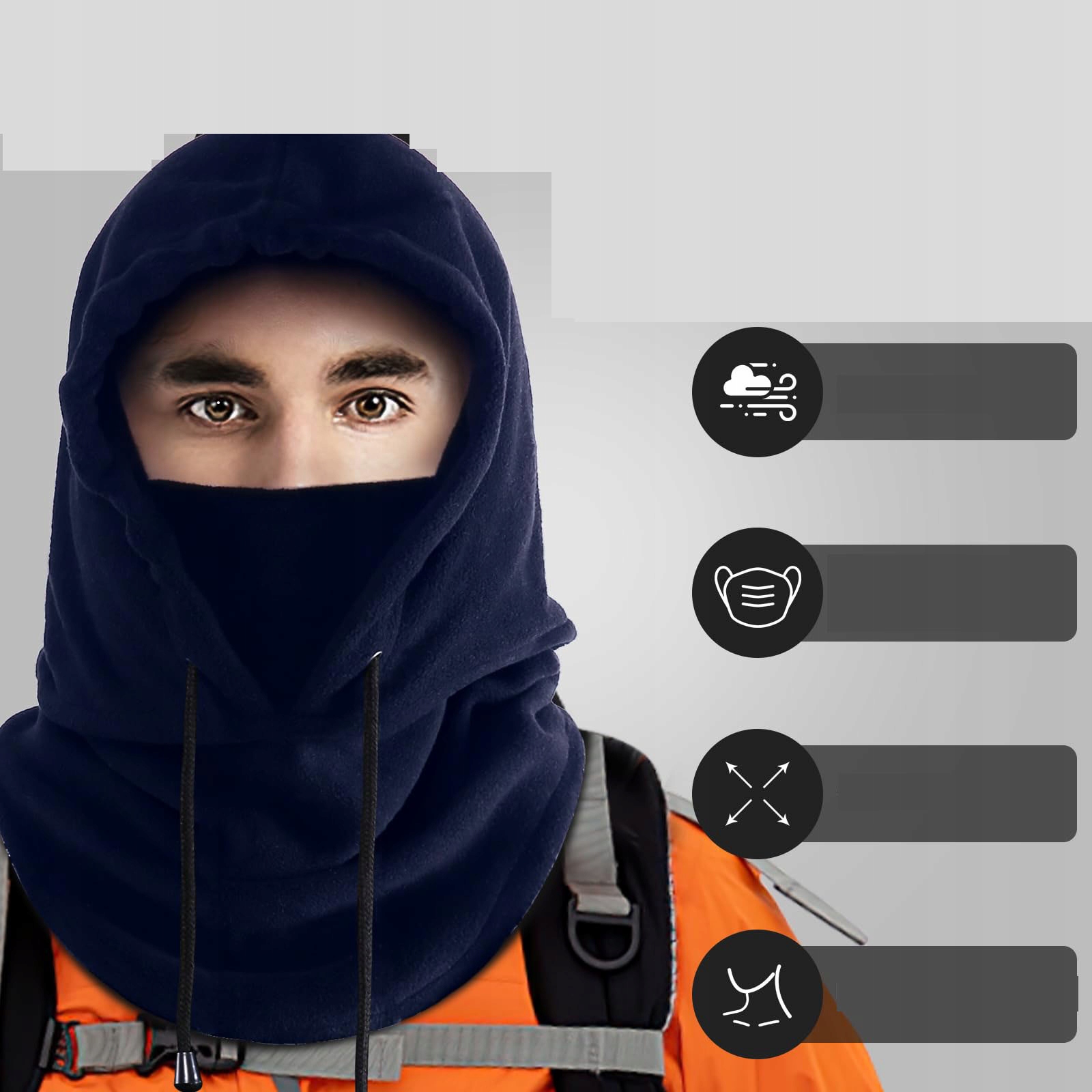 Широке застосування: забезпечує повне тепло вашій голові, обличчю та шиї, підходить для різноманітних заходів на свіжому повітрі, таких як піші прогулянки, кемпінг, їзда на велосипеді, мотоциклі, біг, їзда на скутері, ходьба на снігоступах, похід, катання на лижах, велосипед , риболовля, альпінізм та інші види спорту. Це також корисно для активного відпочинку на природі в холодні дні, коли може несподівано знятися вітер.