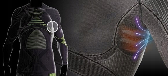 Система паралельних тривимірних повітряних камер 3D Bionic Sphere, збагачена технологією ThermoSyphon, є унікальною у світі, оскільки лише в’язальні машини, розроблені швейцарським брендом X- Bionic здатні створювати цю складну тривимірну структуру. Це забезпечує адекватний теплообмін і допомагає підтримувати належну температуру тіла, за якої м’язи можуть працювати оптимально. Система залишає на шкірі лише тонкий шар поту, який охолоджує тіло під час фізичних вправ, одночасно відводячи надлишок поту на зовнішній шар, де він може вільніше випаровуватися. Цей процес змушує організм витрачати менше енергії для постійного регулювання температури тіла, тому більше енергії залишається для тренувань. Крім того, після закінчення фізичної активності відсутність потовиділення активує другу фазу системи, коли камери починають накопичувати тепле повітря, забезпечуючи тим самим кращий захист від холоду. Технологія ThermoSyphon ще більше покращує весь цей процес, роблячи його ще ефективнішим.