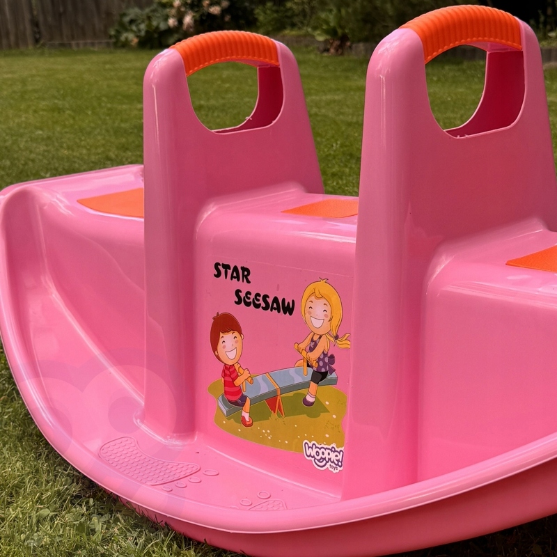 Рожева двомісна качалка від Woopie не тільки дарує масу задоволення, але й сприяє фізичному розвитку дітей. Розрахована на 1-2 дітей, вона ідеальна як вдома, так і в саду. Його ергономічна форма, зручні сидіння та ручки гарантують безпечну та комфортну гру протягом тривалого часу. Виріб виготовлено з міцного, атмосферостійкого матеріалу, який чудово витримує інтенсивне використання. Це чудова альтернатива класичним гойдалкам і гойдалкам - дитина може грати самостійно або вдвох, навчаючись співробітництву і балансу. Легка конструкція дозволяє легко носити виріб куди завгодно. Насичений рожевий колір у поєднанні з помаранчевими акцентами та веселим принтом спереду привертають увагу дітей та спонукають до активної гри! Катання на цій гойдалці - це не тільки чудова розвага, але й вид природної гімнастики, яка позитивно впливає на розвиток великої моторики, рівноваги та координації рухів.