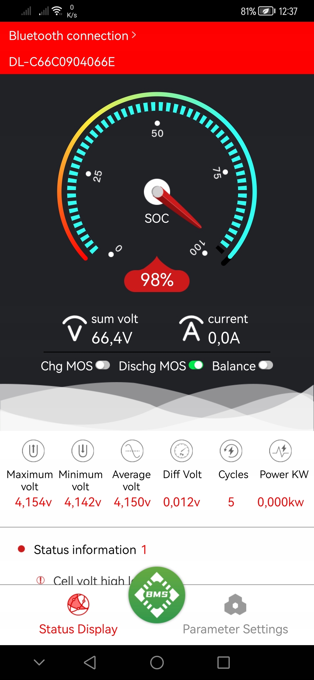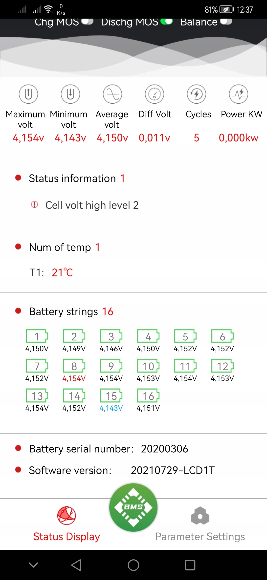 Після підключення BMS до BT-модуля в нашому телефоні ми можемо постійно контролювати температуру, напругу на окремих ділянках, струм та інші параметри.
