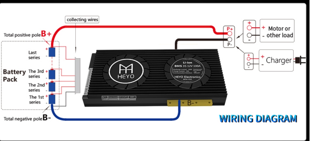 - HEYO BMS має можливість переглядати та програмувати всі параметри через кабель UART