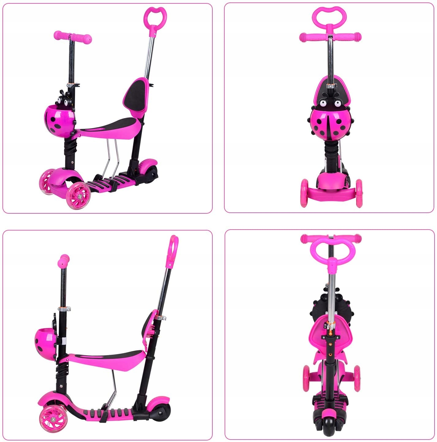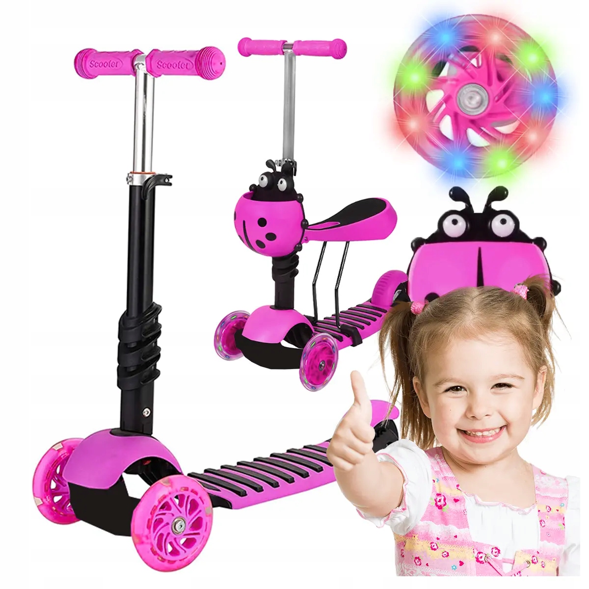БАЛАНСОВИЙ СКУТЕР 5в1 BIEDRONKA ТРИКОЛЕСНИЙ LED РОЖЕВИЙ