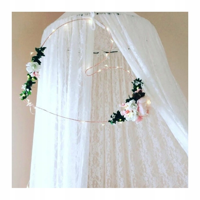 В набір входить: тюлевий балдахін, металеве кільце/набір для монтажу (двосторонній скотч, набір стельових кріплень, шурупи, двосторонній скотч)