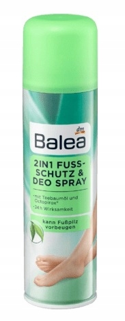 Захисний спрей для ніг Balea 2 в 1 може запобігти подразненню шкіри та ніг спортсмена, якщо його регулярно використовувати. Активна антибактеріальна формула з олією чайного дерева та октопіроксом ефективно запобігає появі неприємного запаху ніг. Спрей для захисту ніг зберігає гігієнічну свіжість ваших ніг і дарує відчуття доглянутої шкіри.