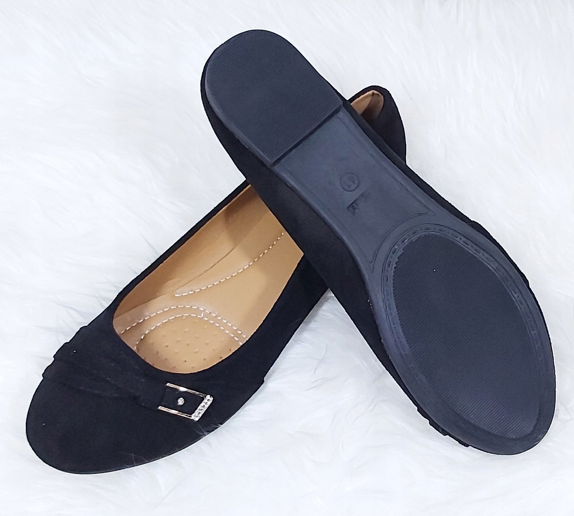 ретельно зроблені балерини, виготовлені з екологічної замші. М'яка зручна вставка. Стилізований ремінь із декоративною пряжкою спереду. Тонко мерехтливі стрази надають всьому жіночого характеру.
