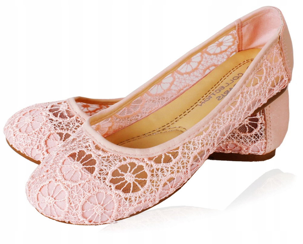 Дівчата з мереживних балерин - це миле взуття, яке характеризується легким та повітряним дизайном. Зроблені з делікатного мережива, вони забезпечують виняткову дихання, що робить їх ідеальним вибором навесні та влітку. Ці типи балерин мають яскраві, пастельні кольори, такі як білі, рожеві або ECRU, які надають їм тонкість і витонченість. Вони ідеально поєднуються з літніми сукнями, спідницями або шортами, створюючи комбінацію, ідеально підходить для різних випадків, від щоденних прогулянок до більш офіційних вечірок. Завдяки м'якій підошві та гнучкому матеріалу, балерини забезпечують комфорт протягом усього дня.