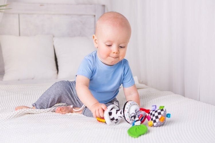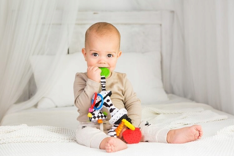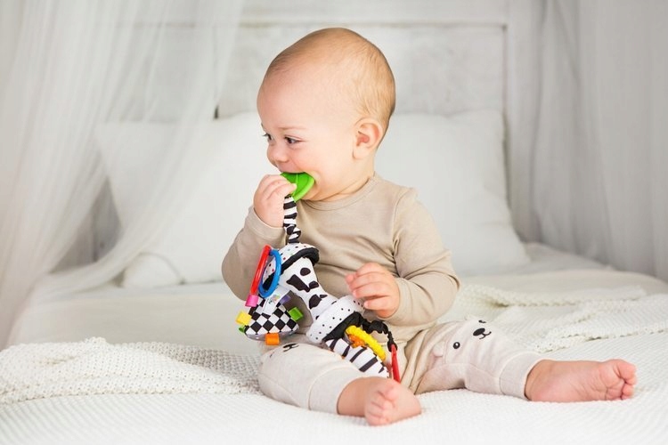 Контрастна іграшка, форма якої ідеально поєднується з ручкою малюка. Тут є безліч сюрпризів, включаючи барвисті зуби в соковиті кольори, труби, пісочниці та стрічки, щоб перетягнути іграшки двома способами. Продукт: