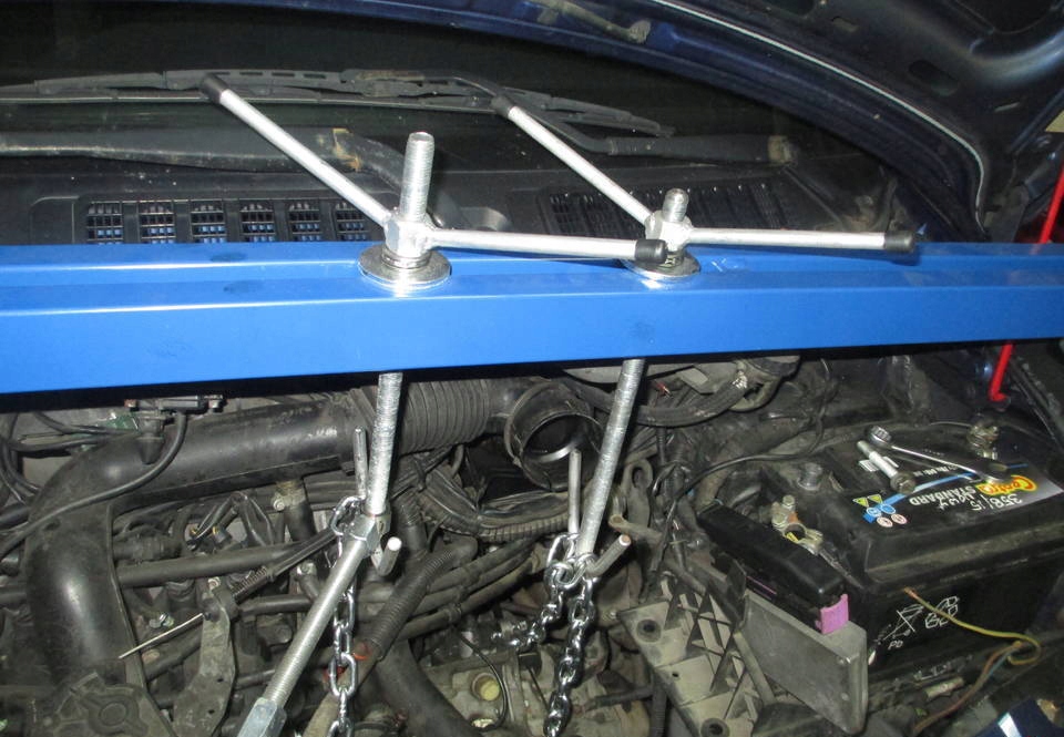 Зменшує навантаження на кріплення двигуна та коробки передач під час демонтажу коробки передач чи двигуна.