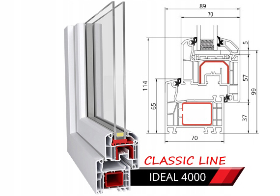 Завжди сталь укладена в раму, до якої пригвинчуються петлі (один із найважливіших рухомих елементів вікна). Сталь завжди цільна, товщиною 1,5 мм для білого та одностороннього кольору, 2 мм для двостороннього колір