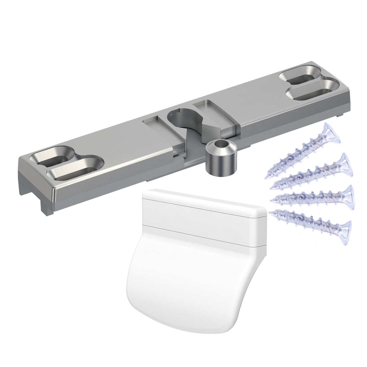 5. Встановіть засув на віконну раму, відрегулювавши його висоту до ролика на стулці так, щоб ролик вільно входив у паз засувки, а потім затягніть його гвинтами. Засув призначений для кожної марки ПВХ-профілю, але ми рекомендуємо затягувати його лише двома гвинтами на внутрішньому краю вікна.
