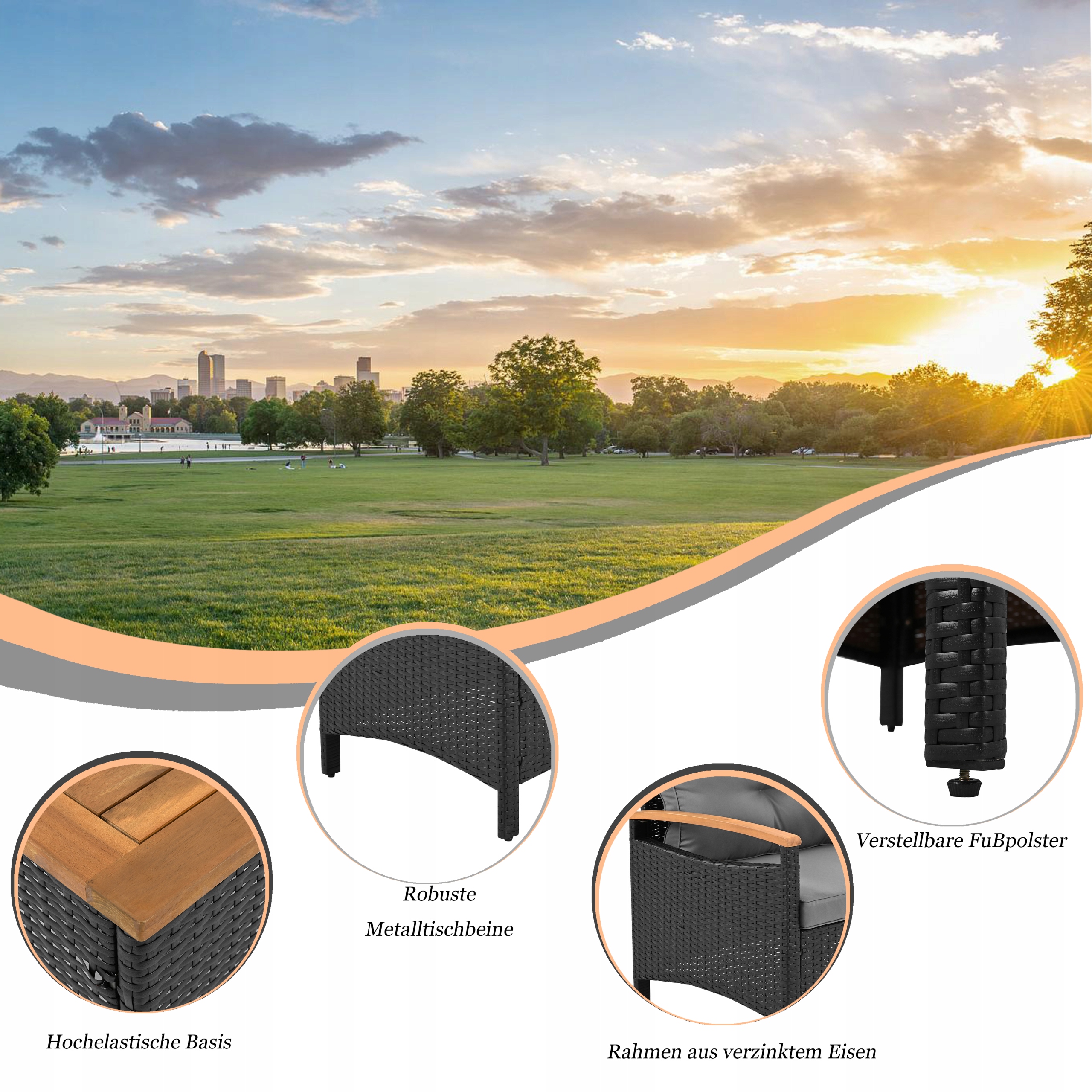 - Плетіння з ротанга та класичне дерево акації створюють елегантний, сучасний вигляд, який доповнить будь-який сад чи патіо. Це ідеальне поєднання комфорту, функціональності та краси для вашого зовнішнього простору.