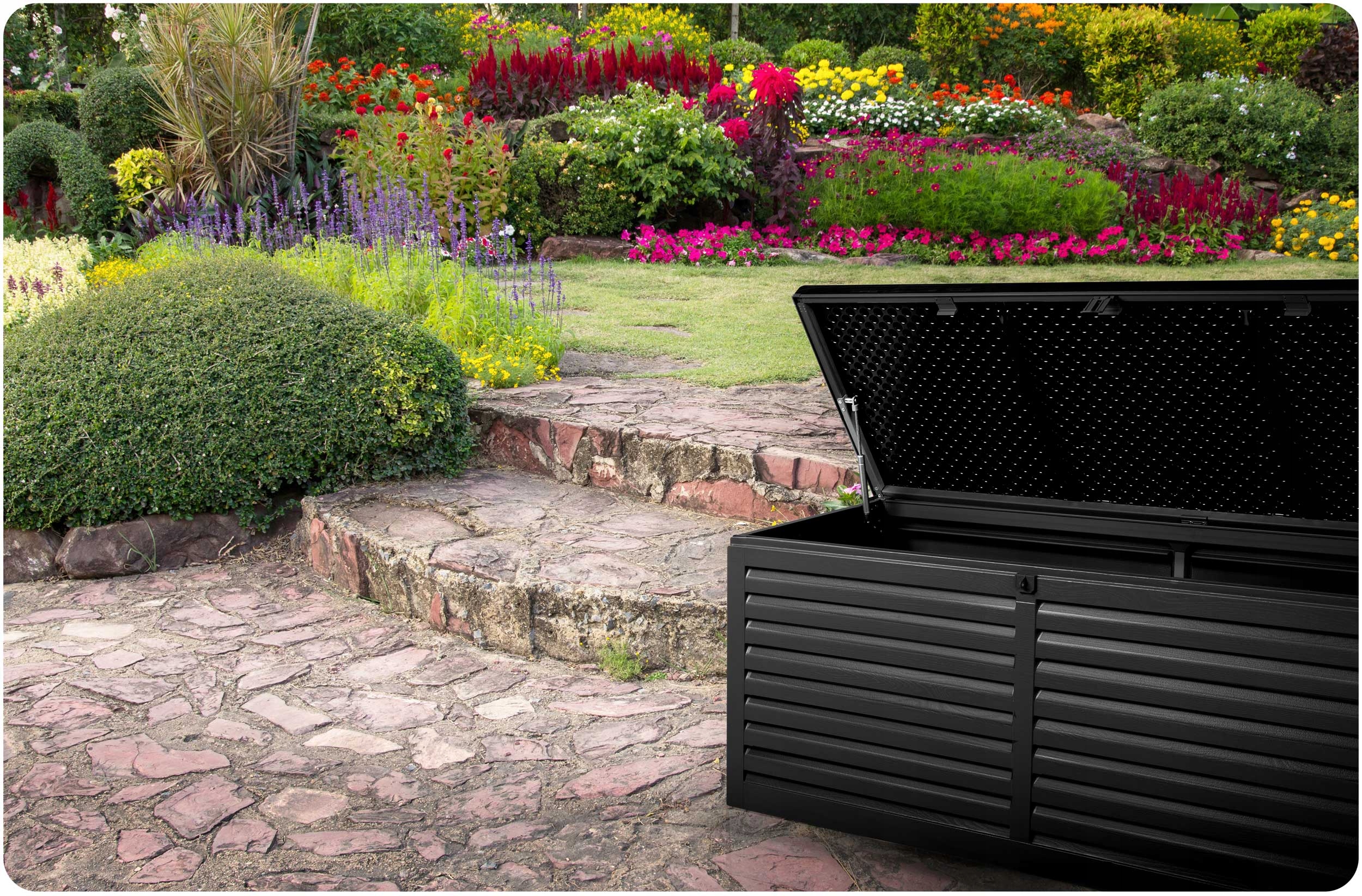 Місткий садовий ящик, ідеально підходить для зберігання необхідних речей для повсякденного використання, залежно від ваших потреб, це можуть бути інструменти, граблі, лопати або подушки, матраци, чохли, дитячі іграшки та багато інших великих і маленьких речей.
