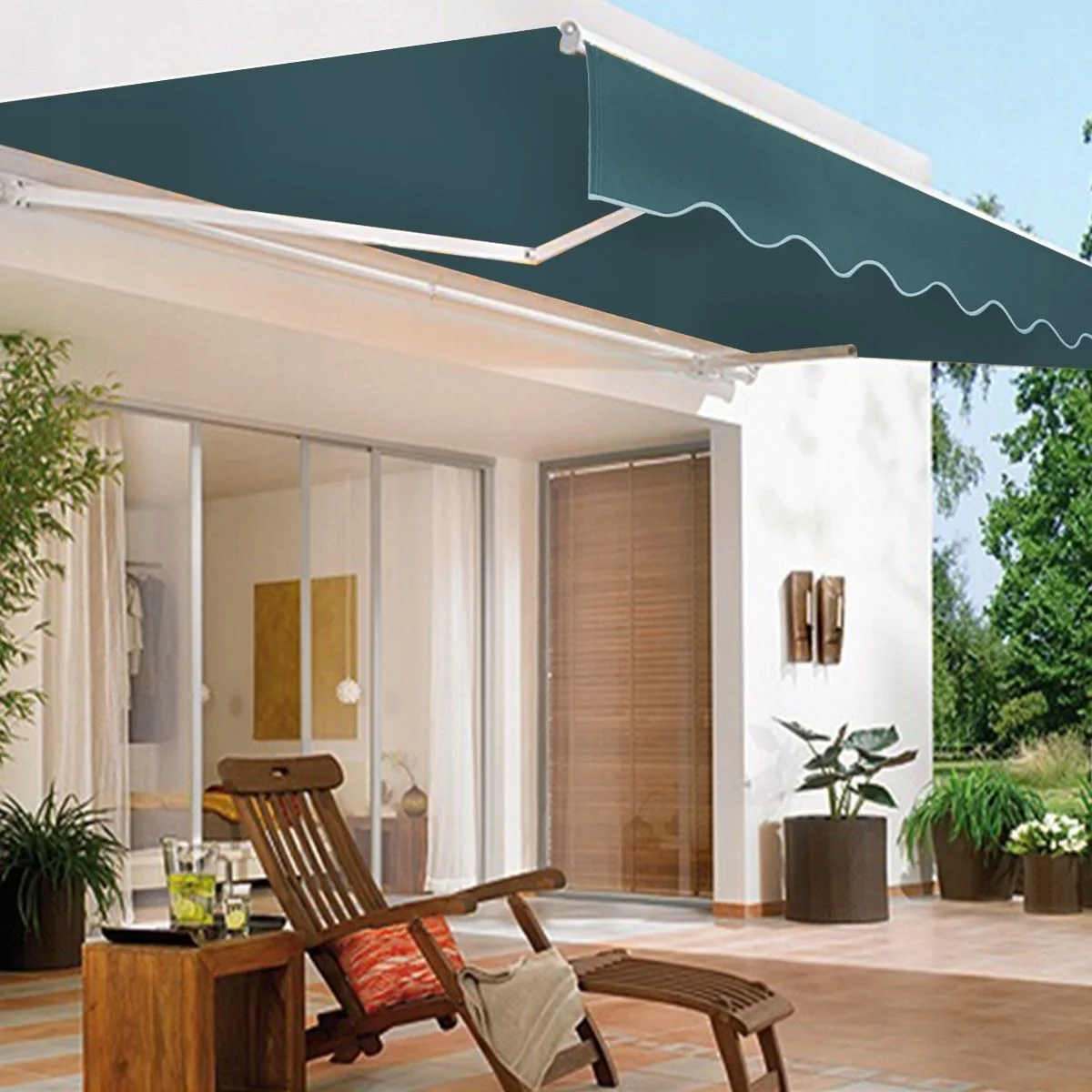Тент із ручним керуванням: наш тент можна складати та розкладати за допомогою рукоятки. Тент можна подовжити максимум на 2 метри.