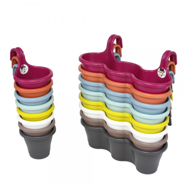 Видовжені балконні горщики (для балюстрад і поручнів) ELHO CORSICA FLOWER BRIDGE. Природна форма і легка форма горщиків ідеально поєднується з квітами. Горщик є тонким фоном для висаджених квітів, створюючи враження легкості композиції.