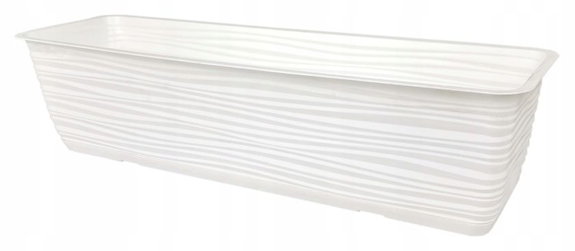 Поверхня коробки опукла - вона нагадує хвилі, створюючи 3D-ефект, який чудово відбиває світло. Осяяний сонячними променями, він точно не залишиться непоміченим. Верх цього балконного горщика оточений бортиком, який запобігає забрудненню горщика під час посадки рослин або поливу. Підставка ідеально з'єднується з горщиком за допомогою засувок. Додатково в ньому є спеціальні пази, в які розміщуються тримачі рейлінгів. У горщику є отвори для стоку води.
