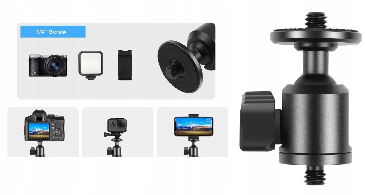 BALL HEAD 2x Внутрішня різьба 1/4'' для камери Аксесуари Лампа Мікрофон
