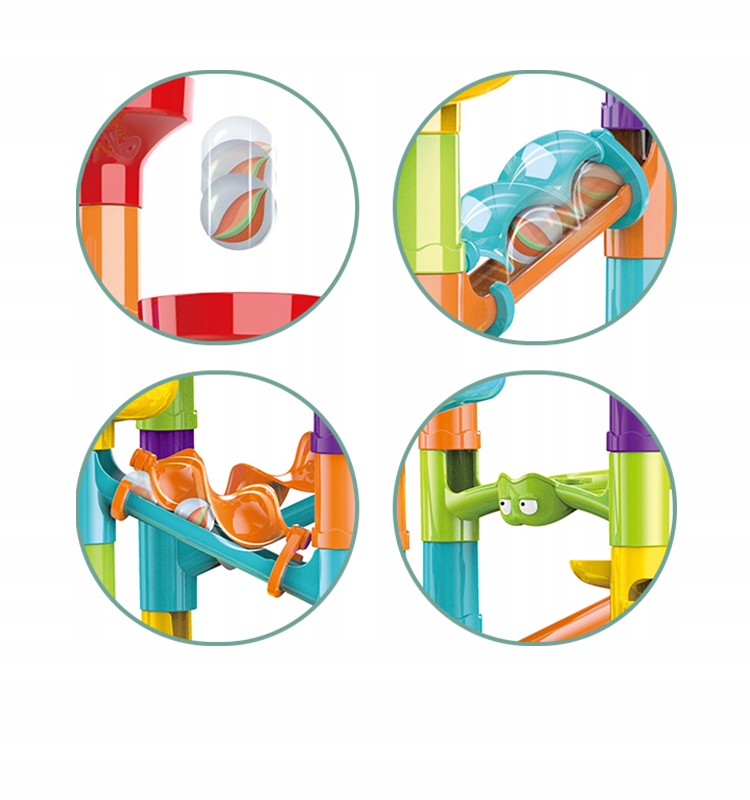 ️Створюйте власні комбінації таких елементів, як гірки, містки, спіралі та багато іншого, і милуйтеся, як плавно рухаються м’ячі по вашій індивідуальній доріжці!