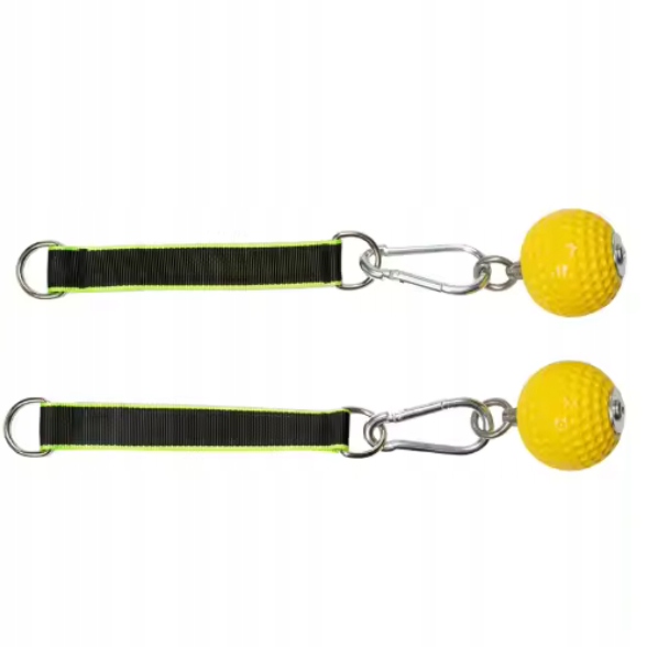 Самі м'ячі виготовлені з поліуретану з протиковзкою структурою, що забезпечить ефективне зчеплення навіть з мокрими руками. піт. Гачки з нержавіючої сталі гарантують довговічність протягом багатьох років, а плетені ремені не розтягуються під впливом ваги.