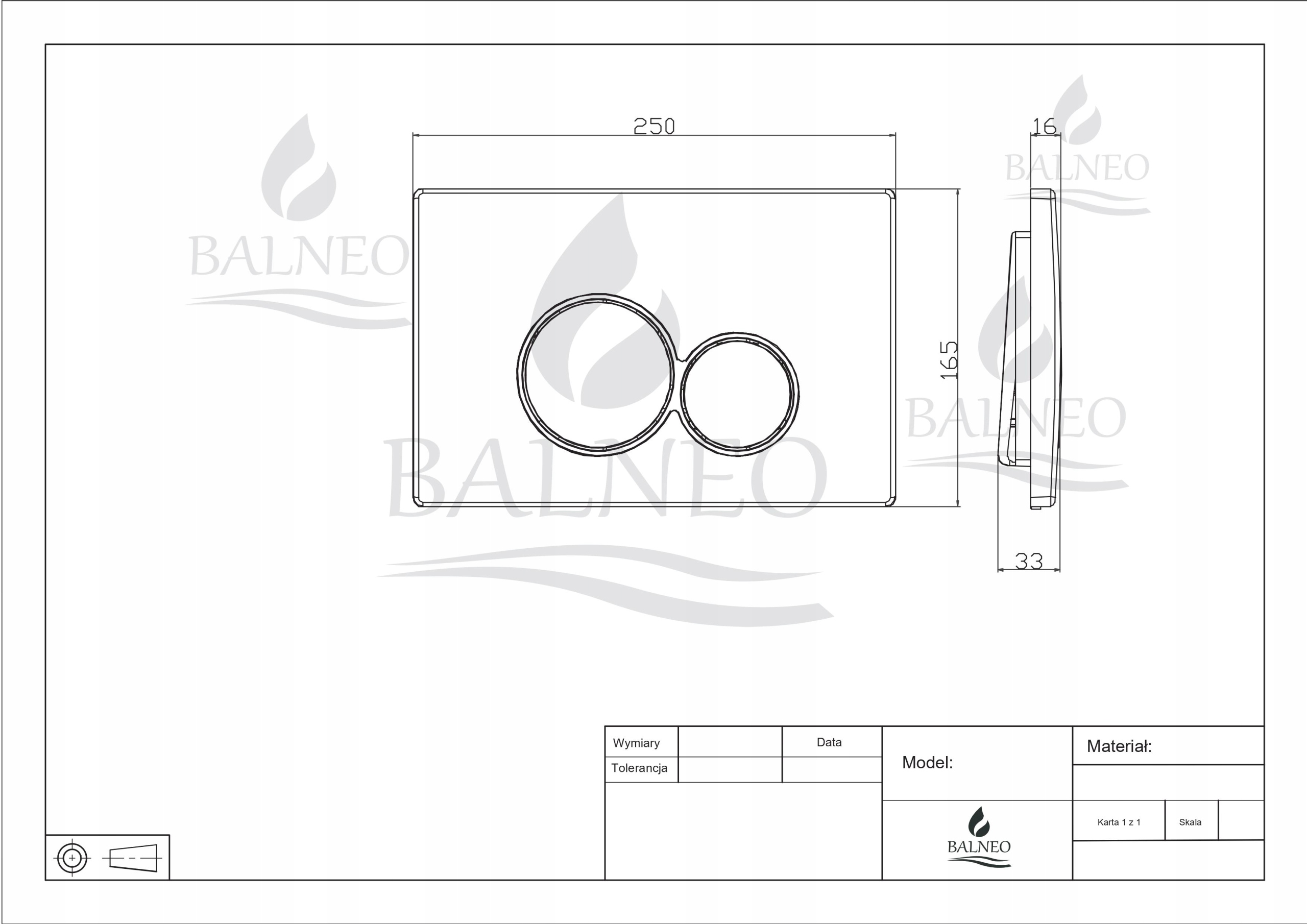 Кнопки змиву найчастіше виготовляються з ABS, продукту, який зазвичай використовується в туалетах і ванних кімнатах. Це міцний і стійкий до різних погодних умов матеріал. Кнопки змиву BALNEO (OXO, EXO, LXO) також відрізняються високою стійкістю до механічних пошкоджень, а також корозії та води. Це важливо, оскільки ця кнопка піддається впливу багатьох факторів, таких як вода, миючі та дезінфікуючі засоби. Крім того, пластикові кнопки змивудоступні в різних кольорах і формах. Завдяки цьому їх можна адаптувати до будь-якого туалету чи ванної кімнати, що позначається на естетичності та функціональності цього обладнання.