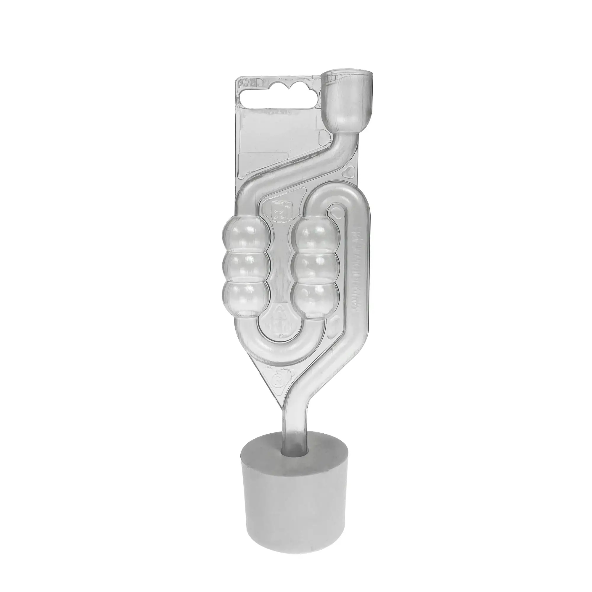 Трубка для ферментації виготовлена з високоякісного пластику, стійкого до механічних пошкоджень. Продукт має 6 бульбашок, які дозволяють ефективно видаляти вуглекислий газ, що утворюється в процесі бродіння. Трубка також обмежує швидкість, з якою вода випаровується з посудини. Прозорий колір дозволяє зручно стежити за процесами, що відбуваються в ньому. Діаметр трубки відповідає отвору в пробках повітряних куль.
