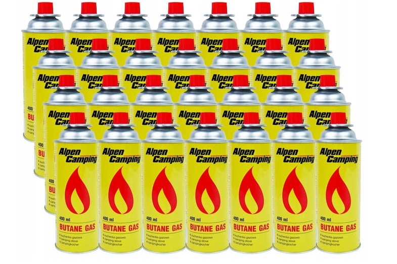 Повний комплект газових балонів. Кожна пляшка наповнена високоякісним газом ізобутан, що забезпечує безпечну роботу як у портативних кемпінгових плитах, газових лампах, так і на грилях. При ємності 400 мл один картридж забезпечує багатогодинну ефективну роботу при температурах від -10˚C до +40˚C. Сучасний клапан дозволяє зручно підключати і від'єднувати пляшку, не спорожняючи її повністю. Картриджі мають сертифікат якості за стандартом ЄС, тому їх можна транспортувати в кабінах вантажівок TIR. У коробці 28 балонів, тож жодна пригода не закінчиться через несподіваний вичерпання газових балонів