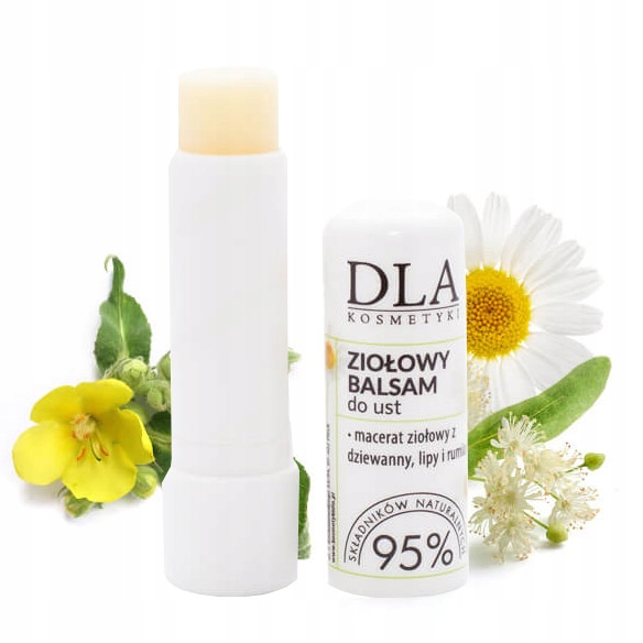 Бальзам для губ на основі трав'яного мацерату коров'яку, липи та ромашки. Ці трави мають зволожуючу, регенеруючу та захисну дію. Ми готуємо мацерат самостійно і це займає близько 3-4 тижнів. Ефективно зволожує, регенерує і захищає ніжну шкіру губ. Крім того, він також містить масло ши, кокосове масло, вітамін Е і ланолін, що відповідає за пом'якшення, живлення і розгладження епідермісу.