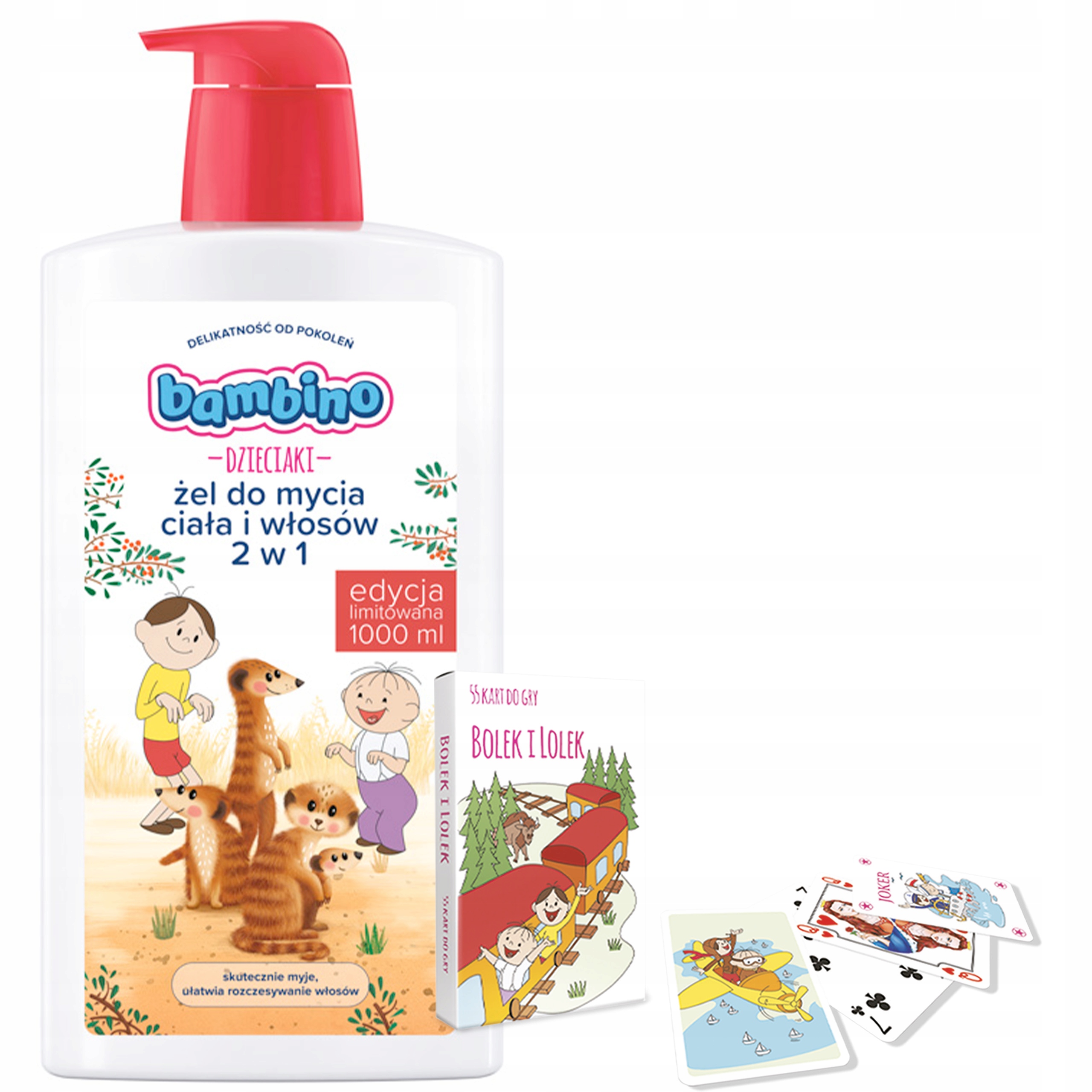 Гель для миття тіла та волосся Bambino Kids Meerkats 2в1 1000 мл + гральні карти