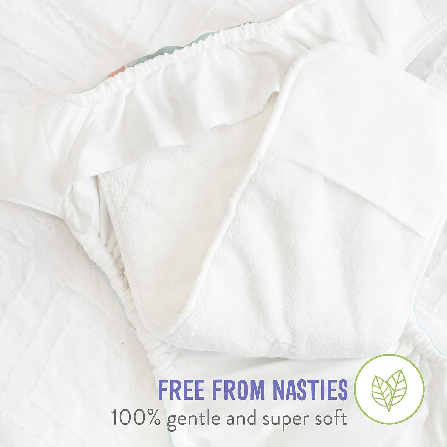 Підгузник виготовлений з м'якого матеріалу, який залишається дивовижно м'яким навіть після багаторазового промивання і забезпечує комфорт дупи вашої дитини.