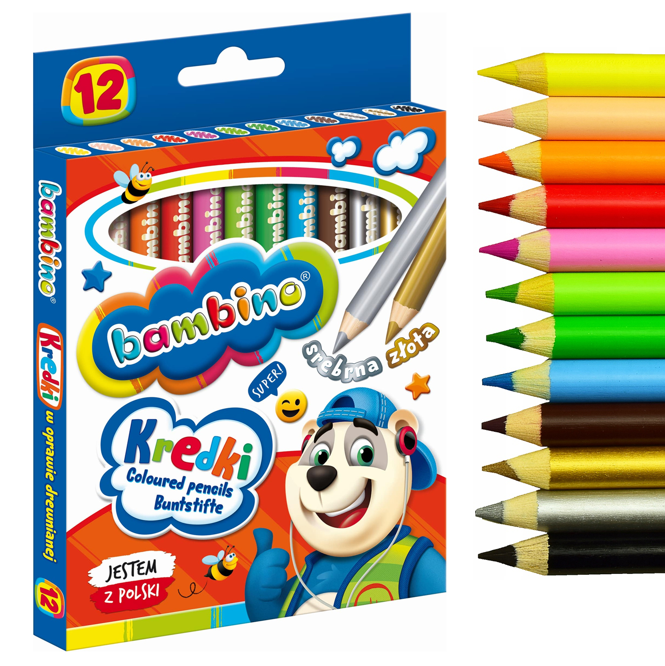 BAMBINO ШКІЛЬНІ ОЛІВЦІ 12 КОЛЬОРІВ З КАОЛІНОВОЇ ГЛИНИ, ДЕРЕВ'ЯНІ, ТОВСТІ