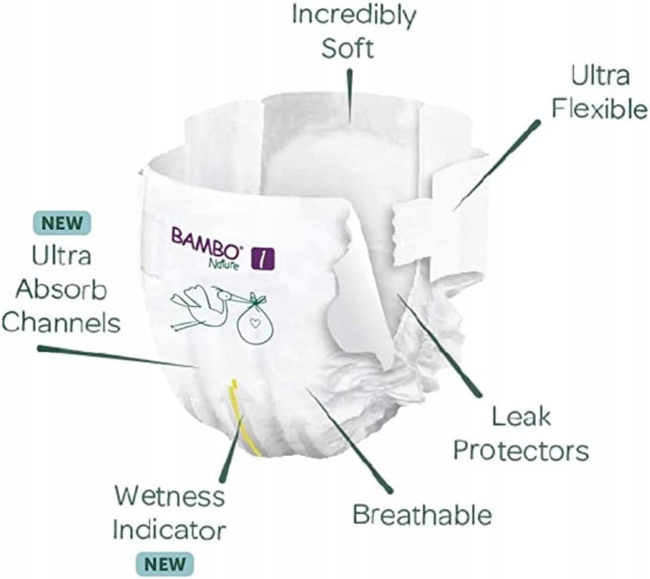 ПІДГУЗКИ ЕКОЛОГІЧНІ BAMBO NATURE 1 NEWBORN 2-4KG