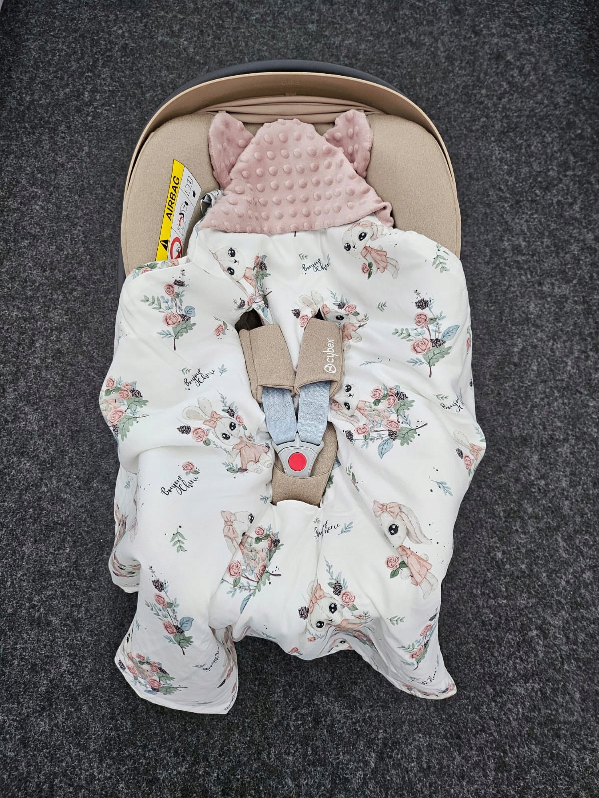 Bambusowy otulacz Kocyk 90x90 cm do fotelika samochodowego Królik Romantyk