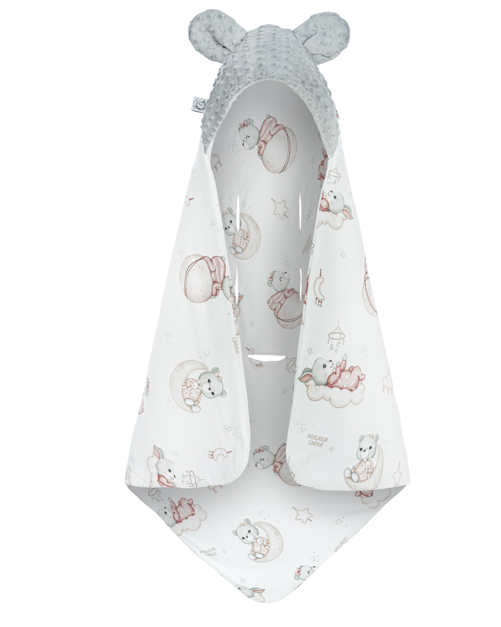 Продукція Bonjour Cherie шиється вручну в Польщі з особливою ретельністю та увагою до деталей, від найвищого якісні тканини, що забезпечують тривале задоволення від використання. Ковдру можна комбінувати з різними виробами Bonjour Cherie, створюючи унікальне, неймовірно барвисте оформлення для коляски чи кімнати вашої дитини.