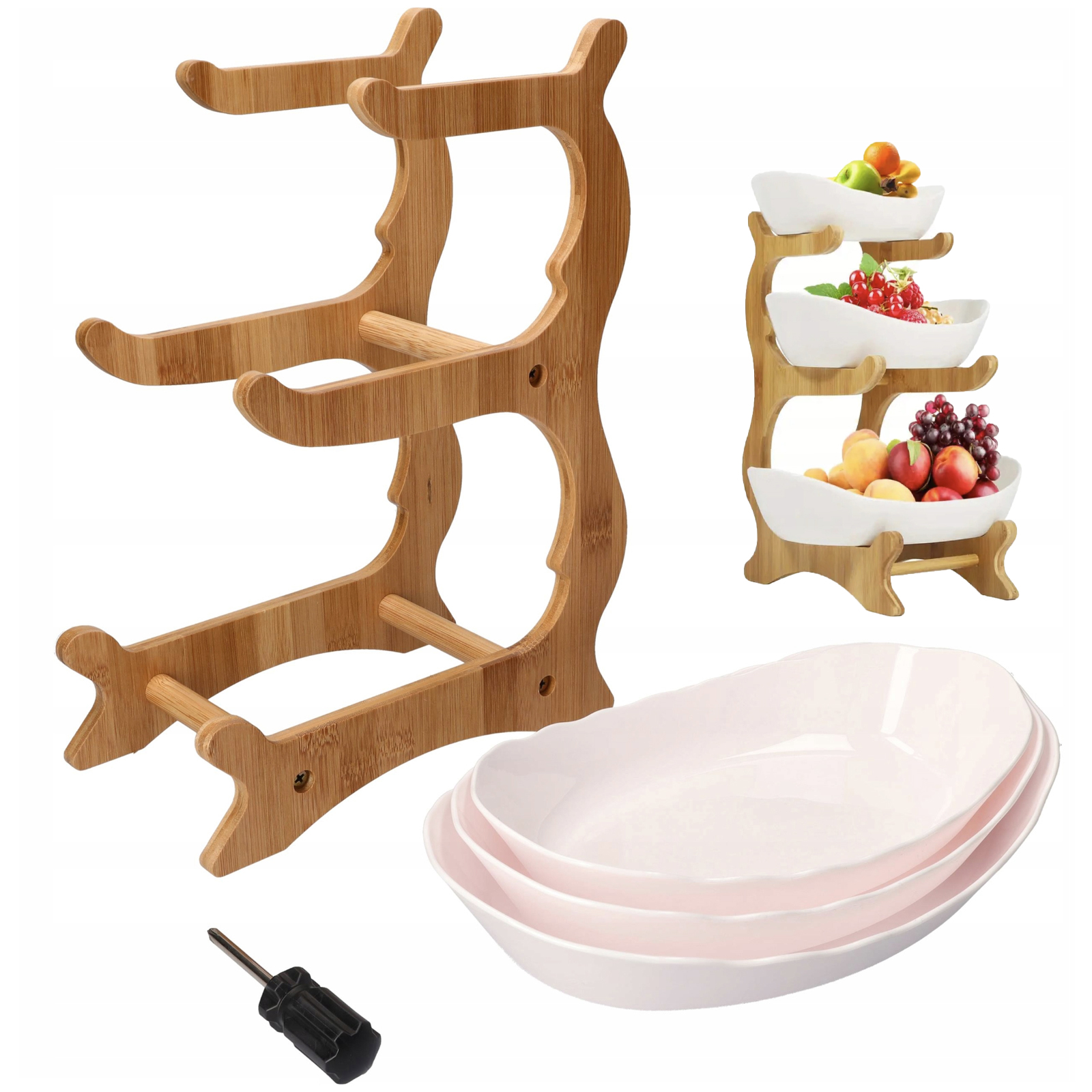 - 🍇【Елегантне трирівневе блюдо】Ідеально підходить для подачі фруктів і закусок. Наші тарілки додадуть елегантності та функціональності вашій кухні чи їдальні. Виготовлений з найкращих матеріалів, він ідеально підходить для подачі фруктів, закусок, тортів та інших делікатесів.