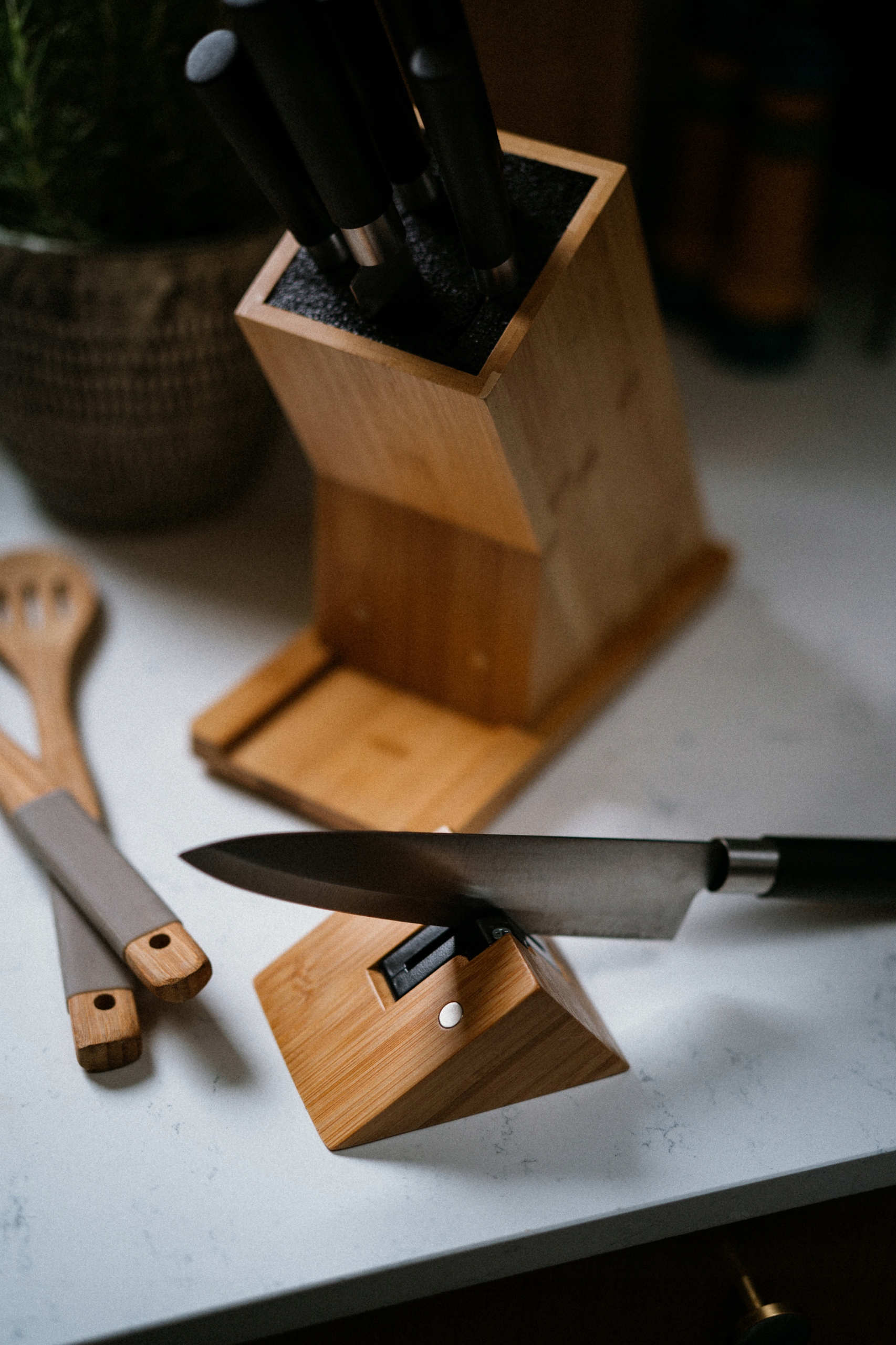 Підкресліть стиль своєї кухні, подбавши про свої ножі. Замовте нашу бамбукову підставку для ножів із вбудованою магнітною точилкою сьогодні!
