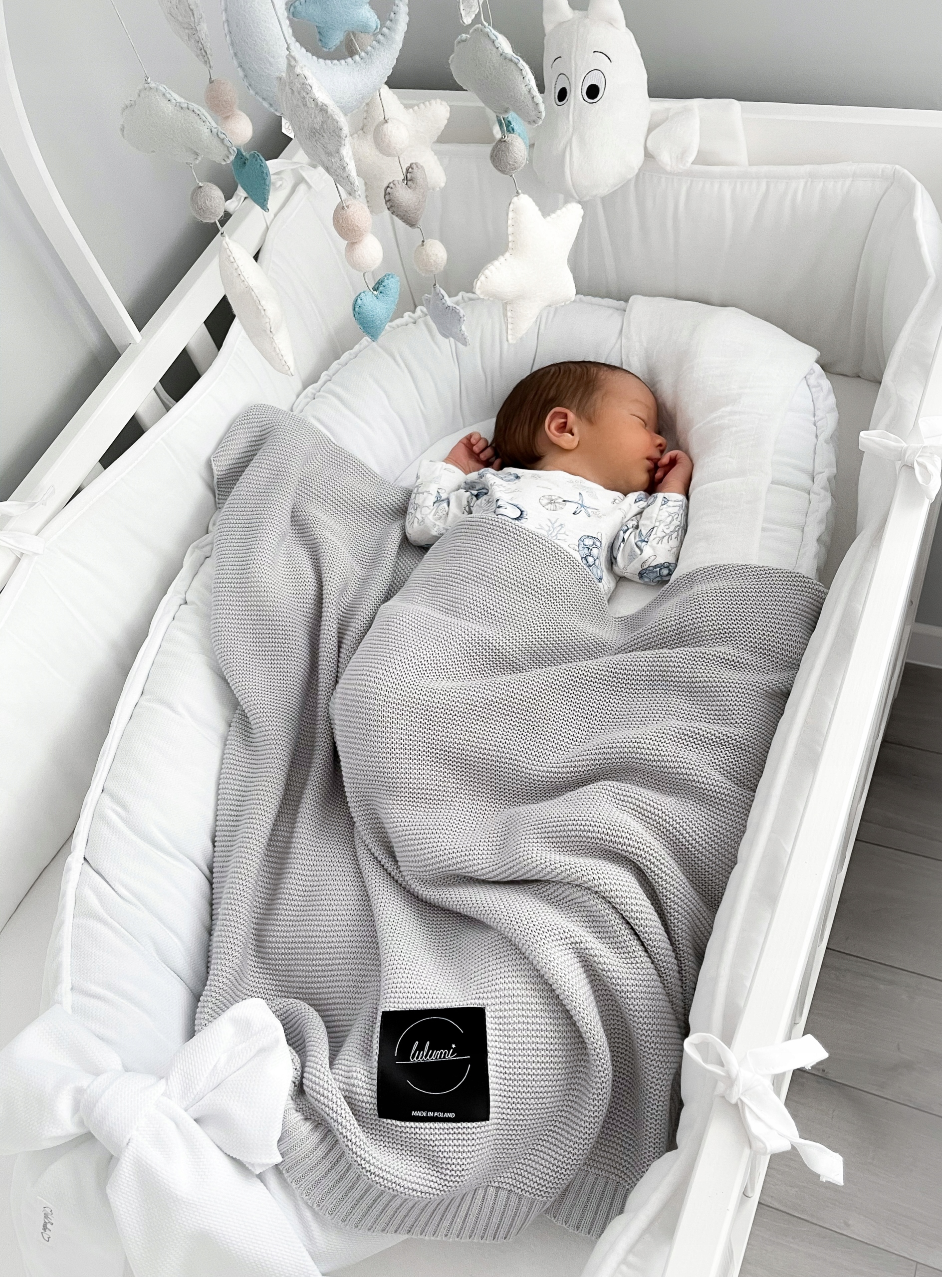 Ковдра ідеально тягнеться, що дозволяє їй облягати тіло дитини. Він піддається рухам і не сковує їх. Його розмір ідеально підходить для ліжечка, люльки, кошика Moses, коляски та крісла. Розроблений, щоб пропускати повітря, навіть якщо дитина тримає його близько до обличчя.