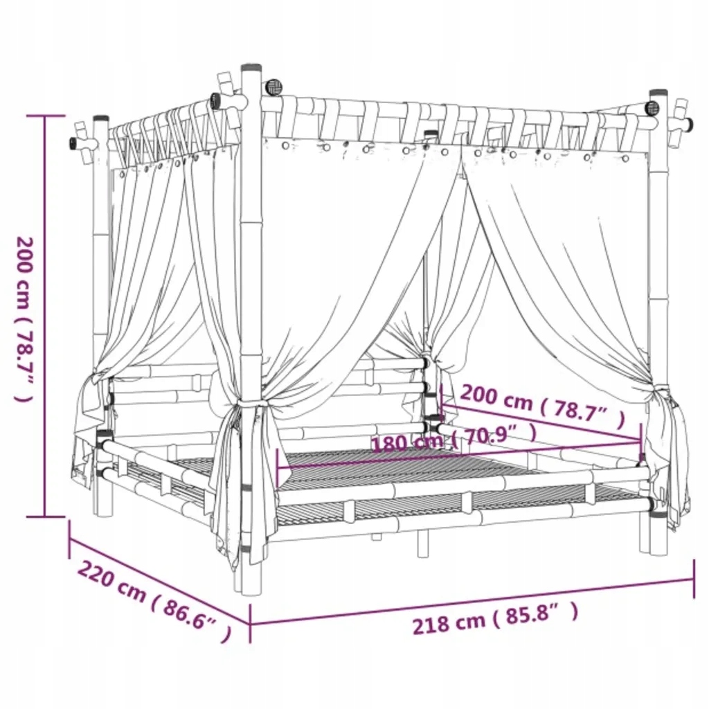 Бамбукове ліжко з балдахіном 218x220x200 см, рустик, з шторами