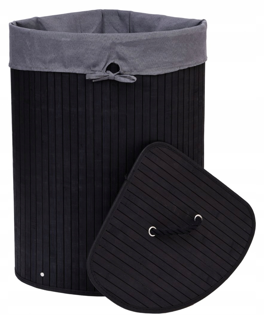 Бамбуковий кутовий кошик для білизни з кришкою, чорний