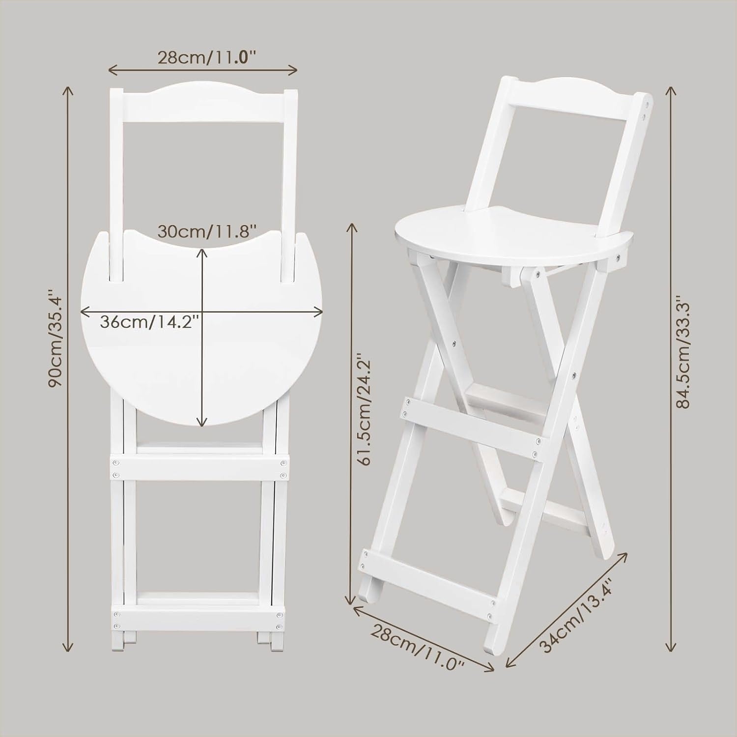 - Складні кухонні стільці: 84,5 x 36 x 34 см (висота x довжина x ширина), висота сидіння 61 см, висота після складання 90 см. Це дерев’яне крісло їдальні найкраще підходить для компактного зберігання. Складні стільці їдальні можна легко підняти після використання та зберігатися в кутку, під ліжком або в машині. Усі розміри вимірюються вручну і можуть мати помилки 2-3 см.