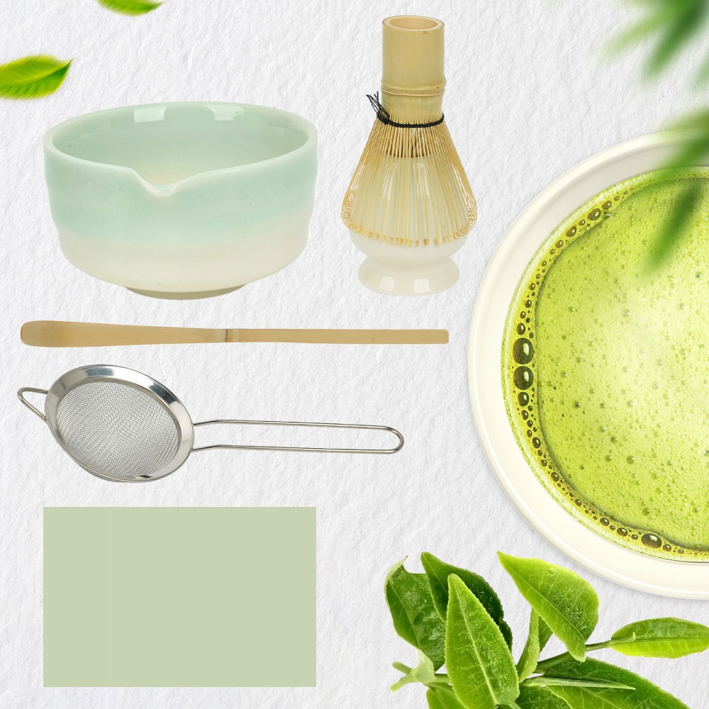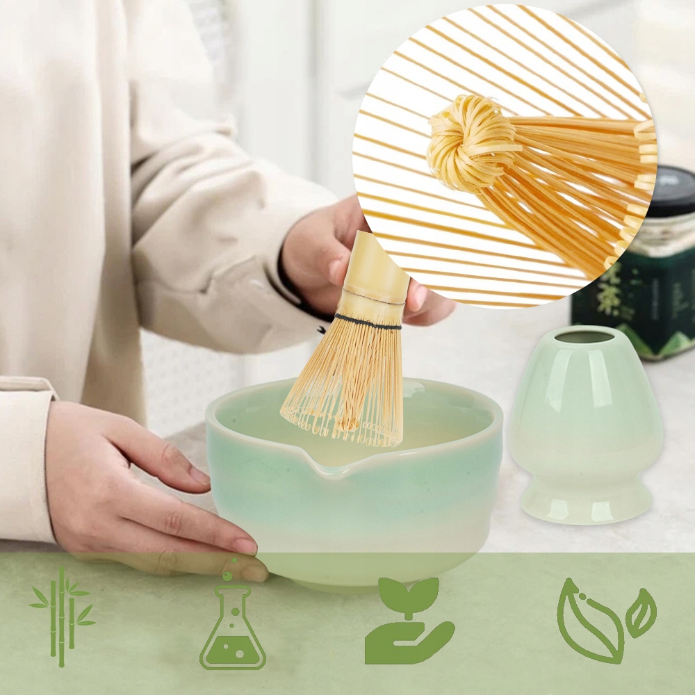 🔍Gradient Green Matcha Set -Бамбуковий віночок, миска, ложка, ситечко, підставка - ідеальний подарунок